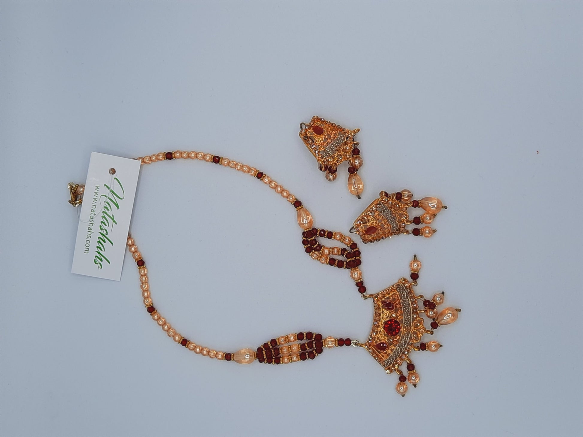 مجموعة من الذهب المقلد المطلي بالذهب عيار 24 قيراطًا تبدو وكأنها ذهب حقيقي مع لؤلؤ أحمر