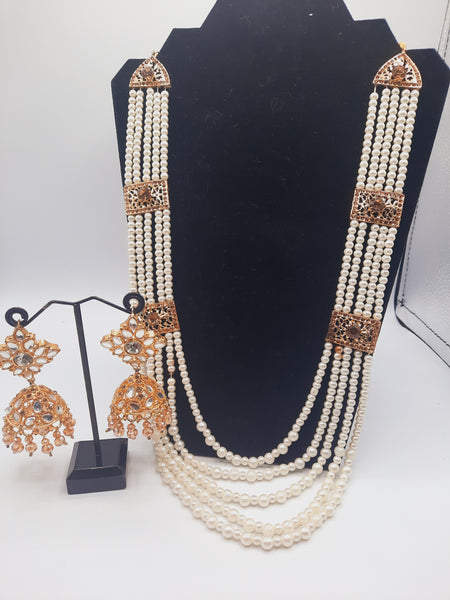 Nauratan style pure white maala with gold plated kundan jhumkas