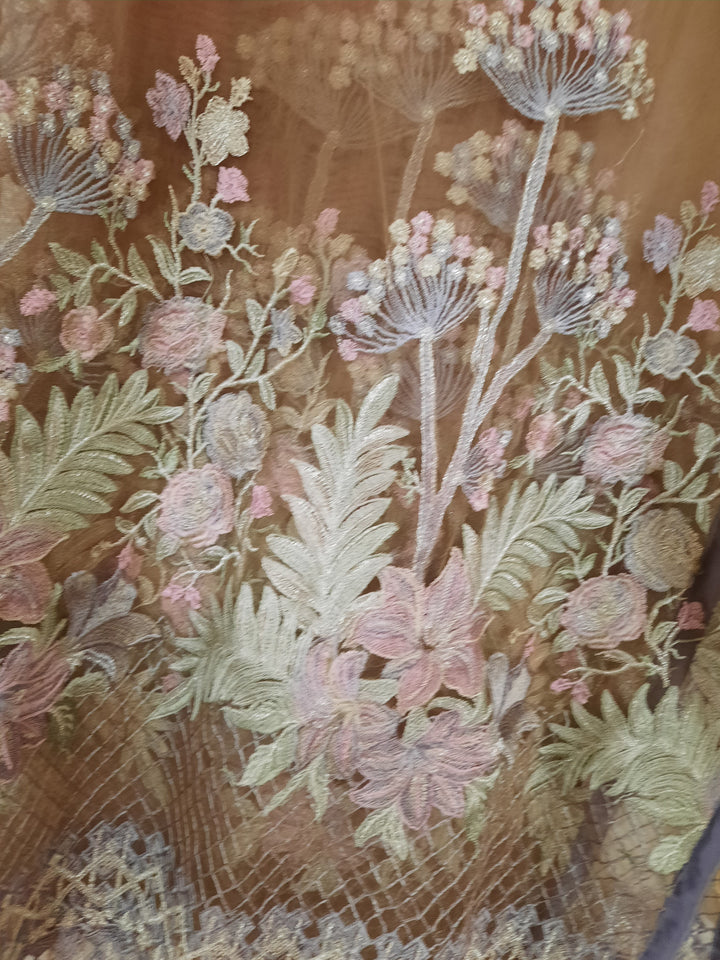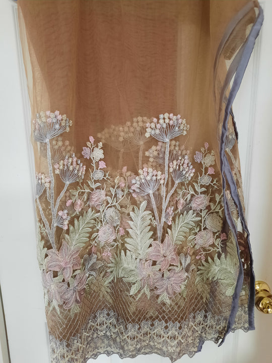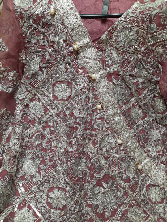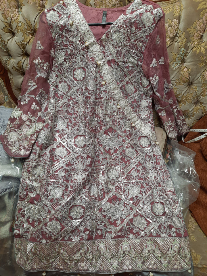 فستان جديد باللون البنفسجي الفاتح مطرز بالفضة