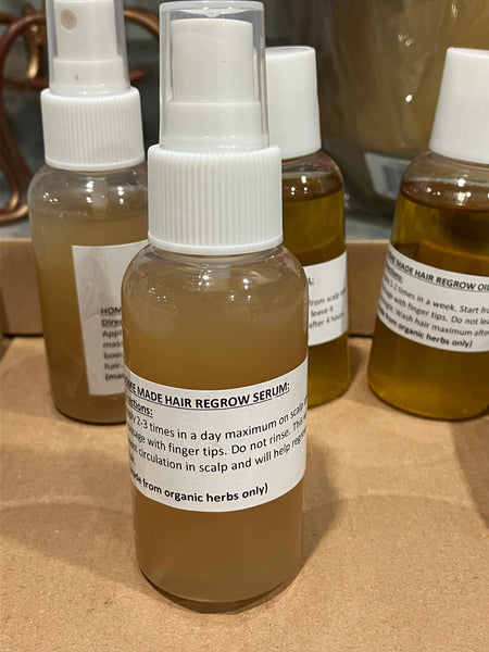 Hair regrow serum to be applied 2-3 times a day and let absorb in scalp, massage with pores. This serum increases blood circulation in scalp and helps regrow hair and makes hair look thicker and fuller.