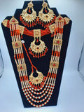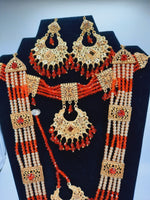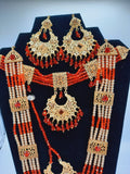 Jewelry set made with red and golden pearls. gold-plated. Gold-plated jewelry set.
