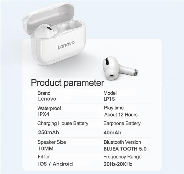 Lenovo LP1S Bluetooth Earphone HD Stereo noise cancelling Wireless Headset Sports TWS Earbuds HiFi With Mic Wireless earbuds
