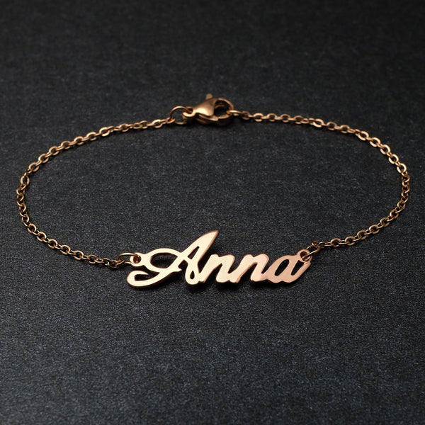 Personalized Custom Name Bracelets For Women Girls Stainless Steel Engraved Handwriting